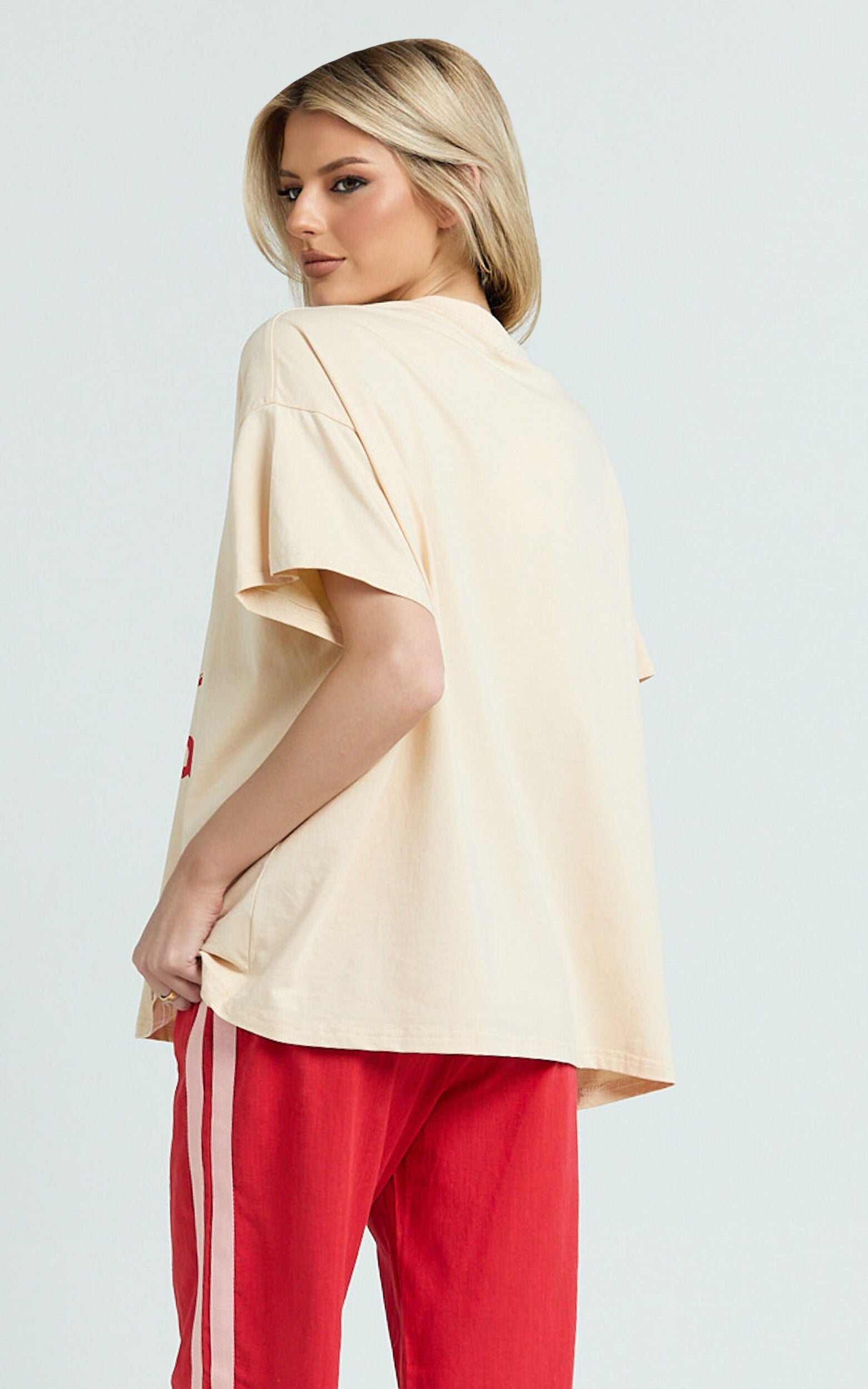 Elevate your everyday style with the effortlessly chic Alena Top - an Oversized Darlin Print Tee in a gorgeous Beige hue. Designed with a modern neutral palette, this top serves as the perfect foundation for a range of versatile looks that speak to both the Gen Z and Millennial fashionista.