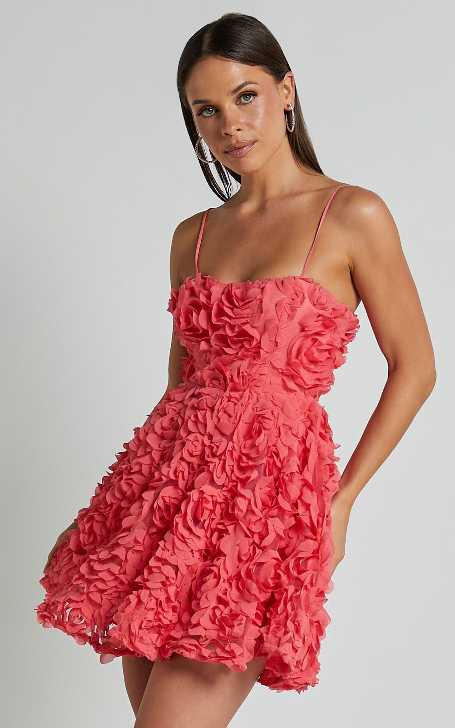 Get ready to turn heads at your next party night in the Alvia Mini Dress! This flirty and playful dress features a stunning 3D flower full skirt in hot pink, perfect for those who love to make a statement. Made from high-quality polyester, this A-line dress is both stylish and comfortable. With its sleeveless design and straight silhouette, it's the ideal choice for showing off your feminine charm on the dance floor. So go ahead, grab your favorite heels and get ready to shine in this eye-catching pink mini dress!
