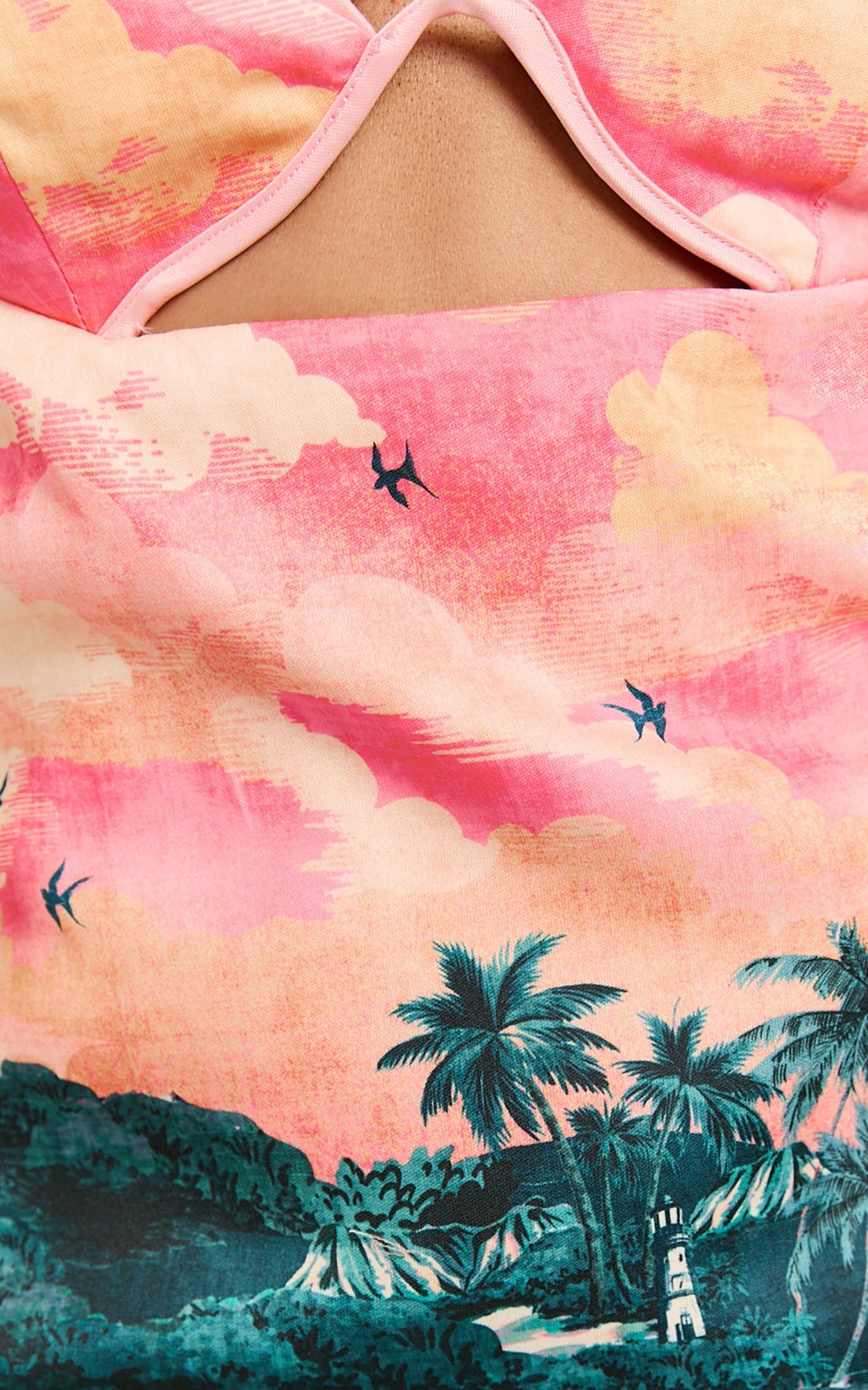 Discover the perfect look in our Amalie The Label - Leesha Under Wire Plunge Front Cut Out Mini Dress in the captivating Island Sunset Print. Designed to celebrate the vibrant spirit of every woman, this dress embodies empowerment and inclusivity, making it a go-to choice for those who dare to express themselves.