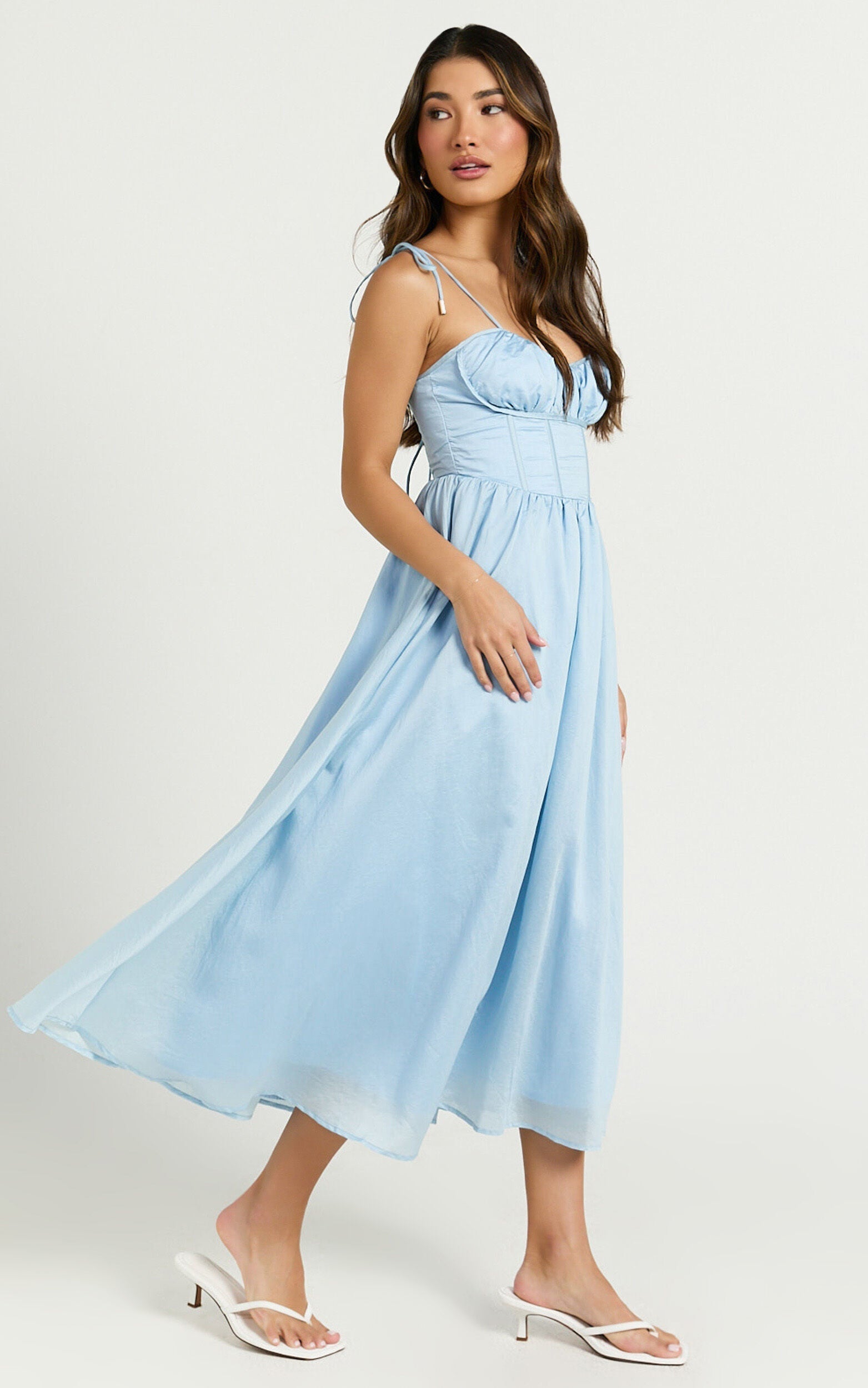 Elevate your wardrobe with the Dolores Midi Dress. This strappy ruched bust corset waist dress in a captivating blue is the ultimate statement piece for any fashion-forward individual. Crafted from sustainable Tencel, this dress combines eco-conscious fabric with show-stopping style, making it a guilt-free addition to your fashion repertoire.