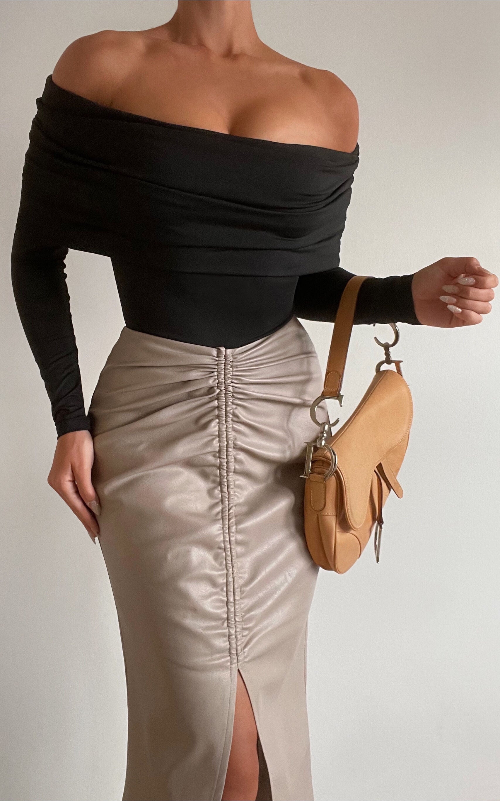 Elevate your jeans-and-a-cute-top combos with the Ermalen Bodysuit! This sultry piece has a bodycon silhouette with a folded neckline that sits off the shoulder. Designed to sit tight and show off your decolletage, it will look so fresh juxtaposed with a wider jean or pant.