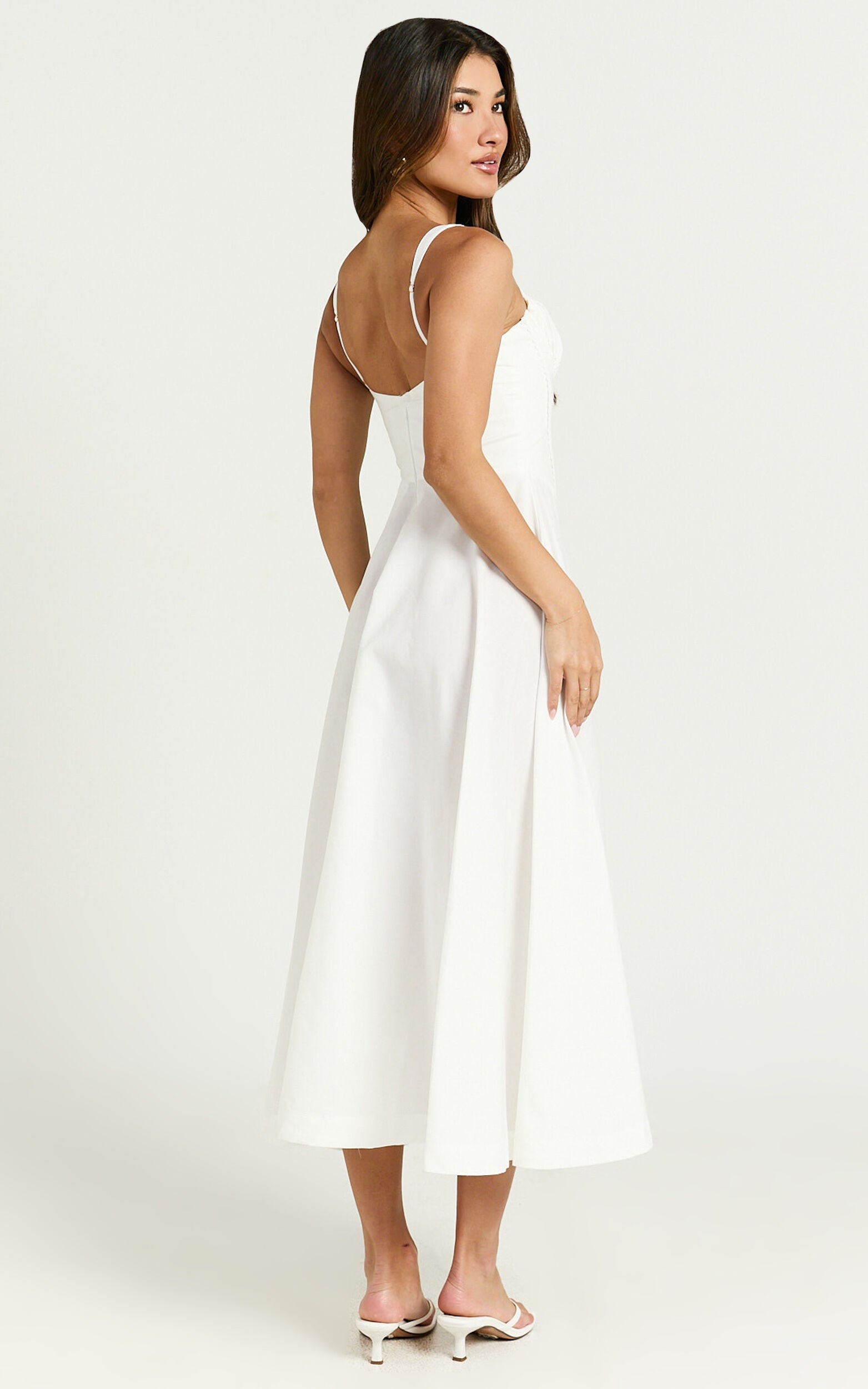 Make a statement in the Jonas Midi Dress - a ruched corset lace trim dress in an ethereal ivory that commands attention while celebrating your individuality. Designed for the fearless and fashioned for the free spirit, this dress is a testament to the power of self-expression. Whether you're stepping out for a party day or embracing the spotlight at any summer soir��e, let this be your go-to ensemble.