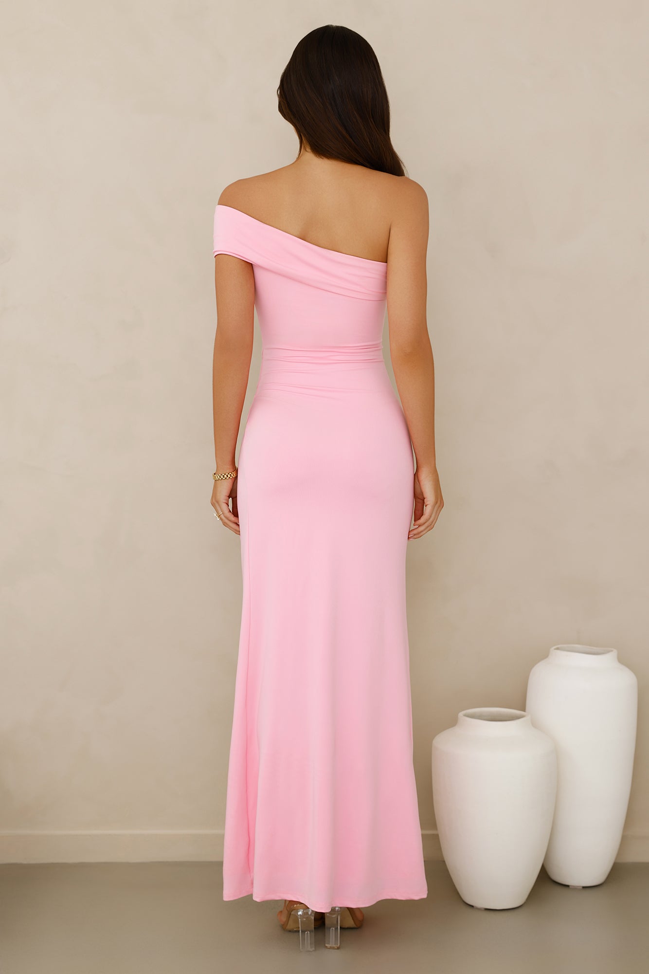 Stand out in a gorgeous style, lovely. The Lavish Luxe Off Shoulder Maxi Dress features a smooth, buttery fabrication, a twist detail, and a split to the skirt. Style with heels and curls for an impressive 'fit.