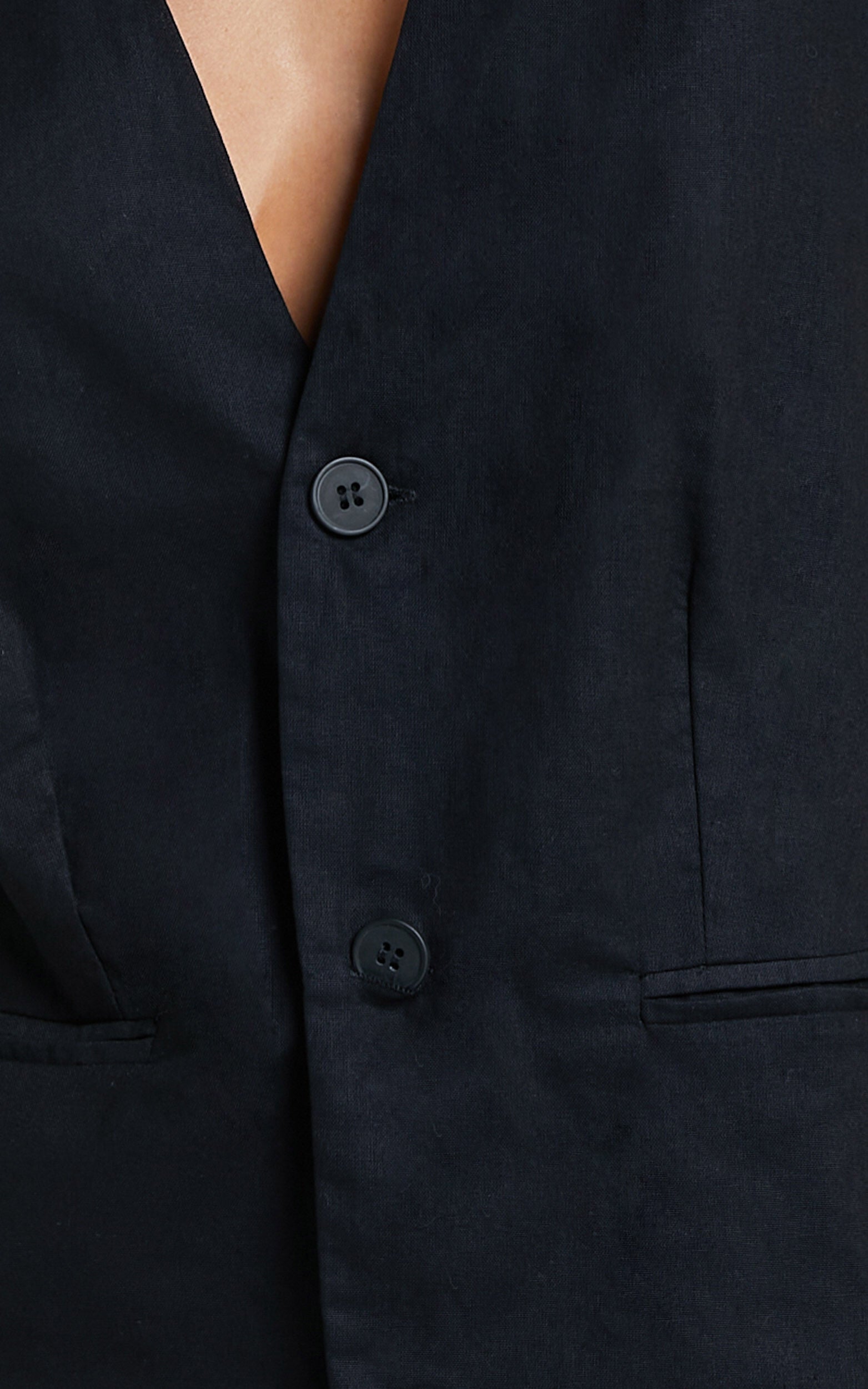 Get ready to turn heads at your next party in the Marlee Two Piece Set. This stunning co-ord shorts set features a V neck vest and matching high-waisted shorts, all in a chic black linen look fabric. The sleeveless design is perfect for those hot summer nights, while the button-through detail adds a touch of elegance. Made from a soft cotton blend, this set is both comfortable and stylish - just what every fashion-forward girl needs in her wardrobe. So why wait? Rock this trendy two piece set and be the life of the party!
